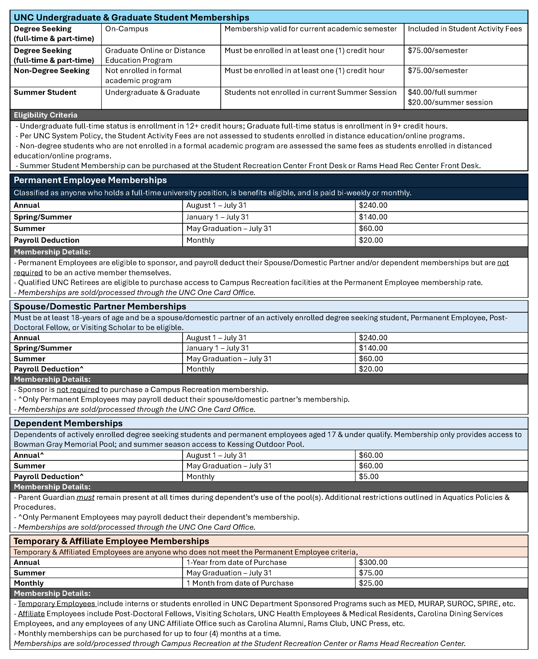 Recreation Memberships